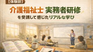 介護福祉士の実務者研修を受講した体験談。自宅学習や通学講習の流れ、介護過程Ⅲで事例をもとに学んだ内容、管理栄養士ルートでケアマネを目指す中で感じた学びや気づきを、修了後の視点からリアルにまとめました。